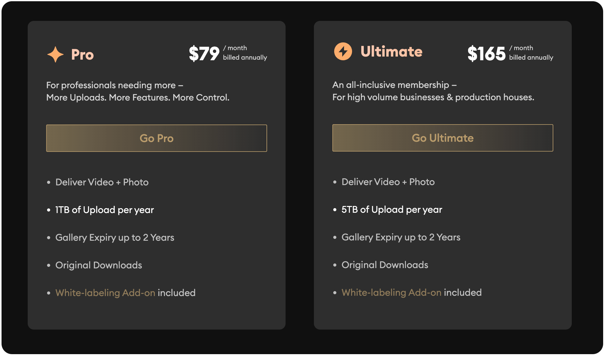 | $79/month (billed annually) | $165/month (billed annually) |