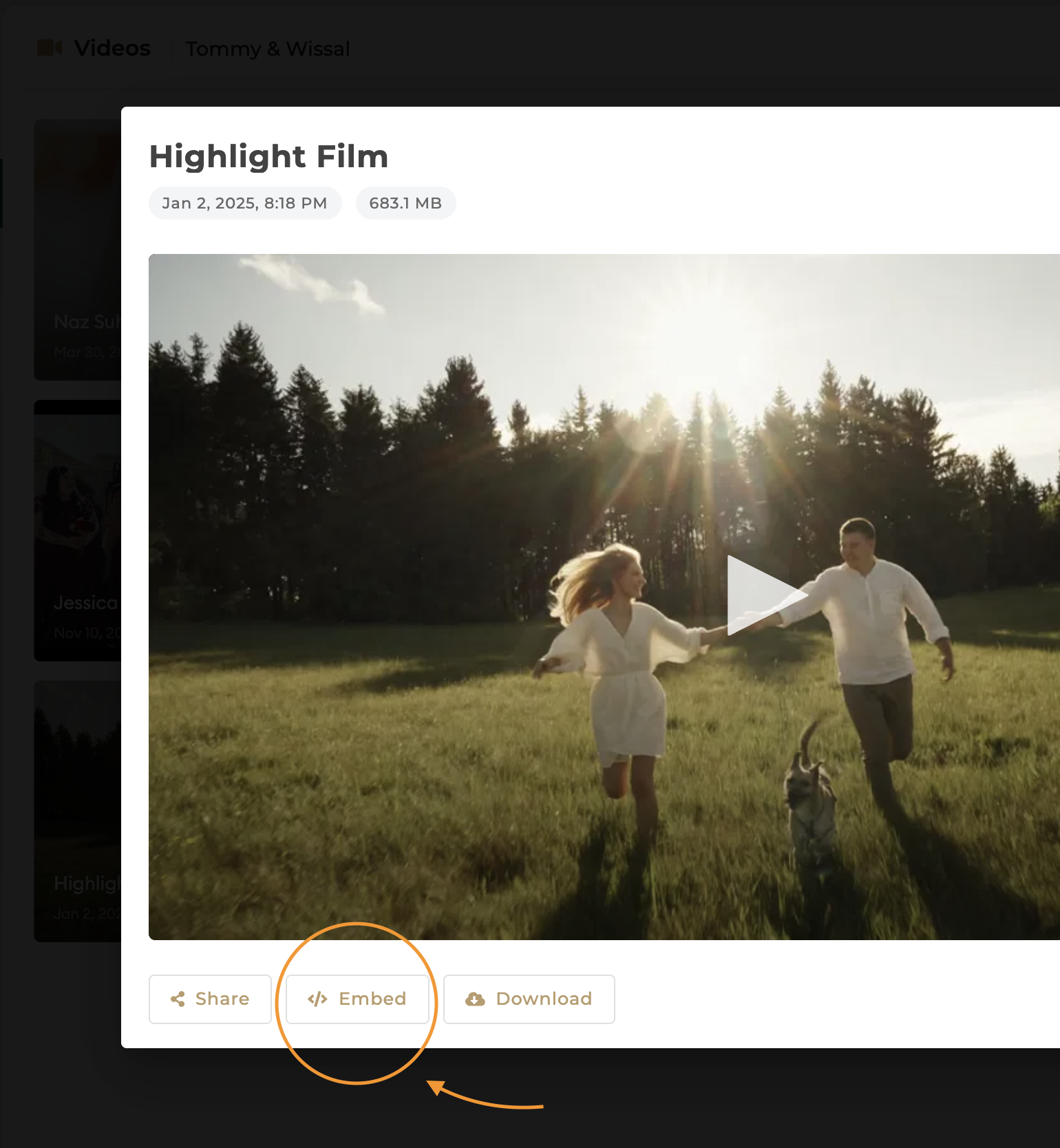 - Navigate to your gallery and click on the Videos tab. Click on the specific video you wish to share.