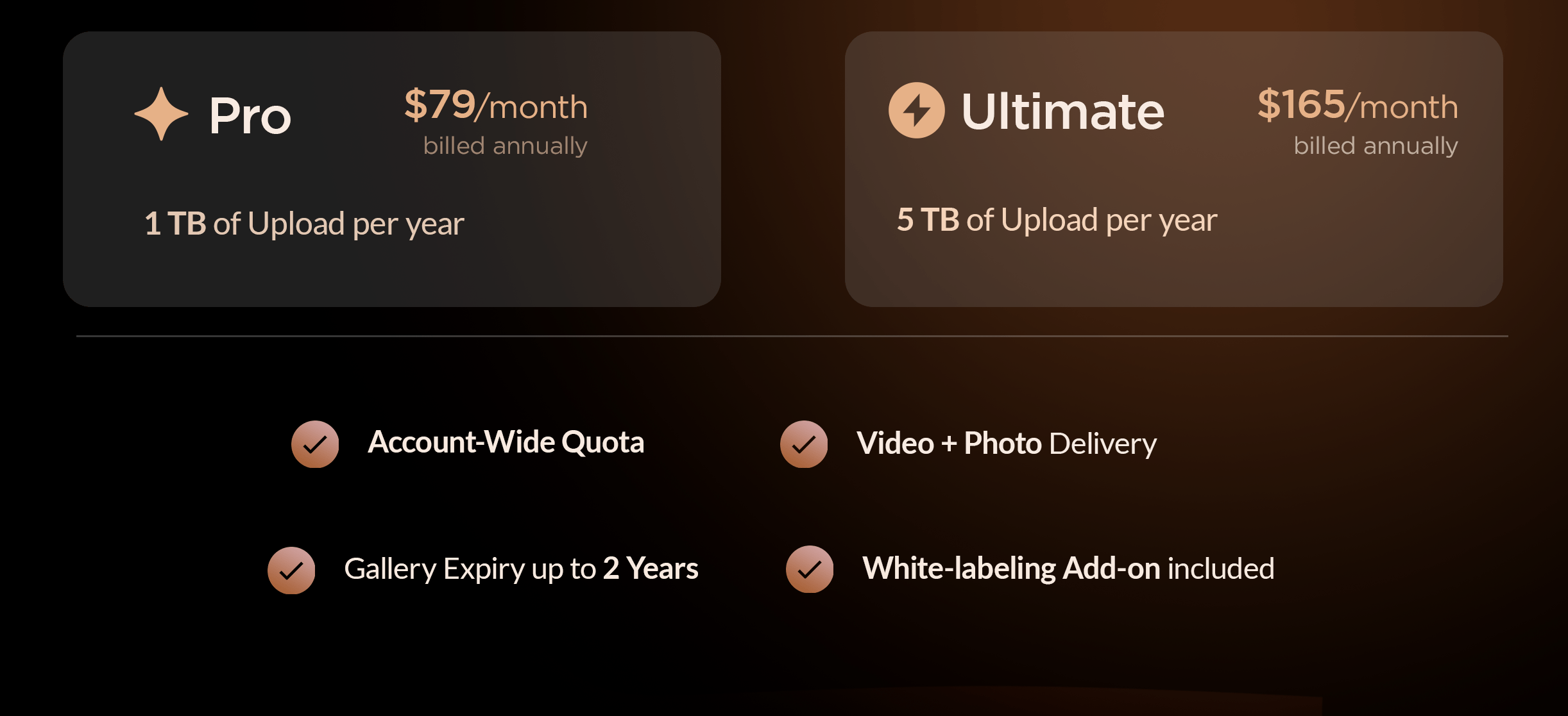 | For professionals needing more — More Uploads. More Features. More Control. | An all-inclusive membership — For high volume businesses & production houses. |